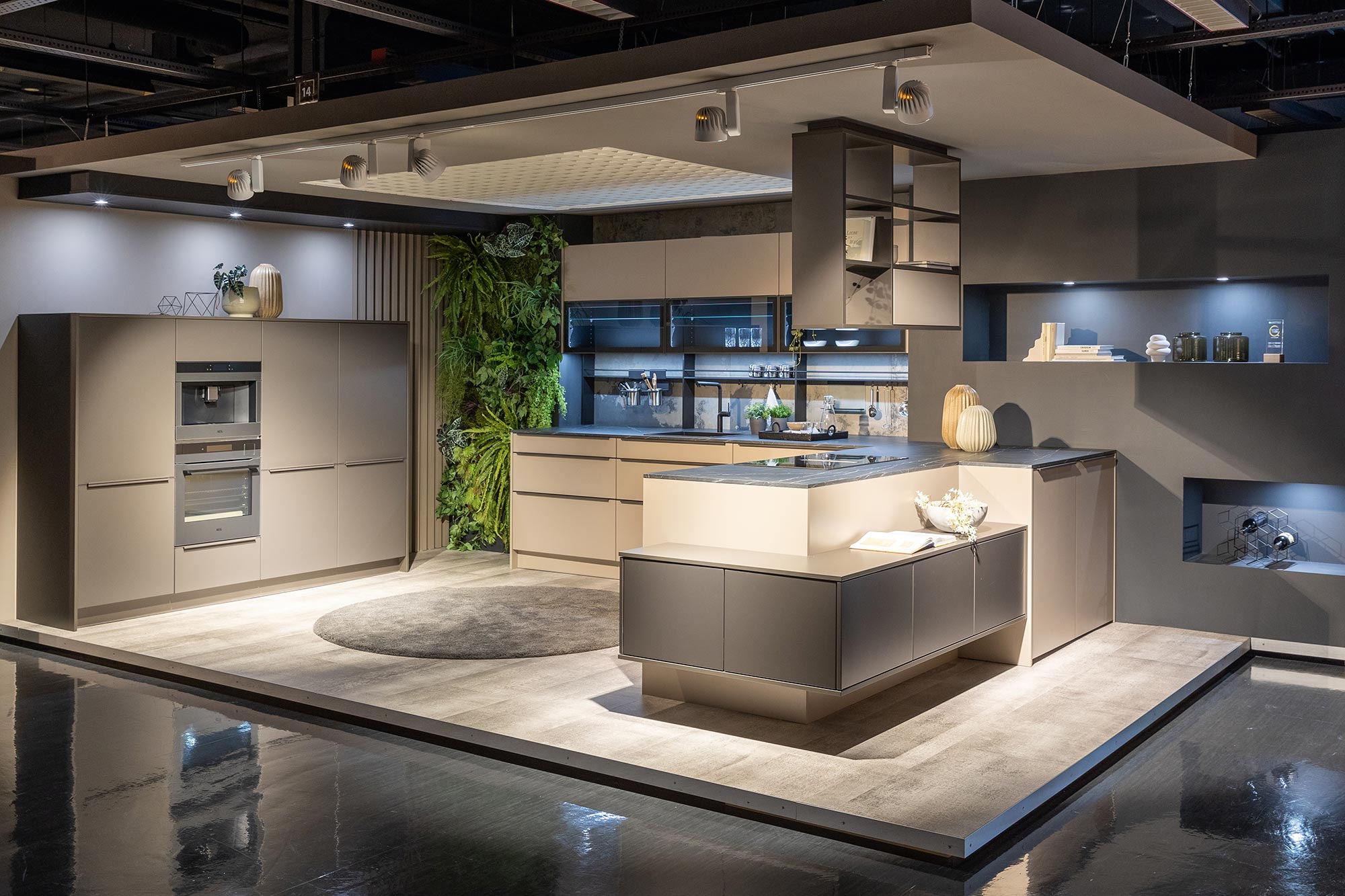 Ein besonderes Statement setzt die Kombination aus Fjord Grün und einer anthrazitfarbenen Arbeitsplatte: frisch, modern und voller Tiefe. Der sanfte Grünton bringt Leben und Leichtigkeit in den Raum, während das dunkle Anthrazit eine elegante Basis bildet. Ideal für alle, die mutige Farbakzente lieben.
